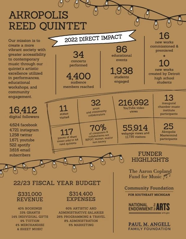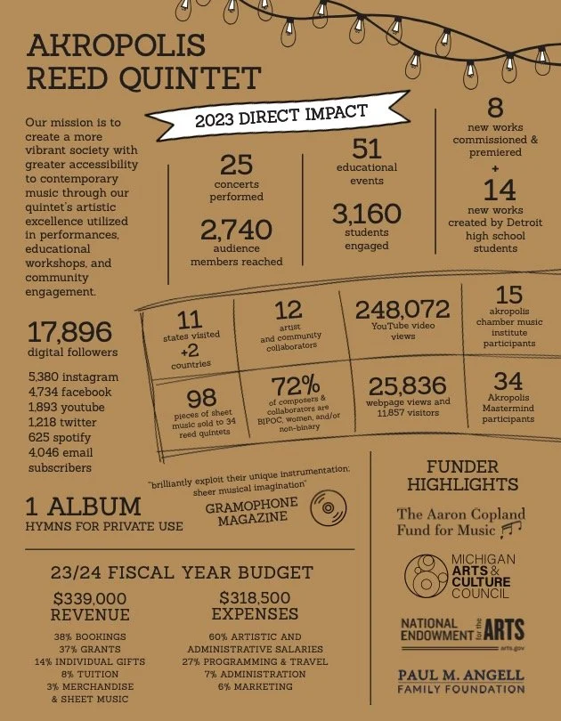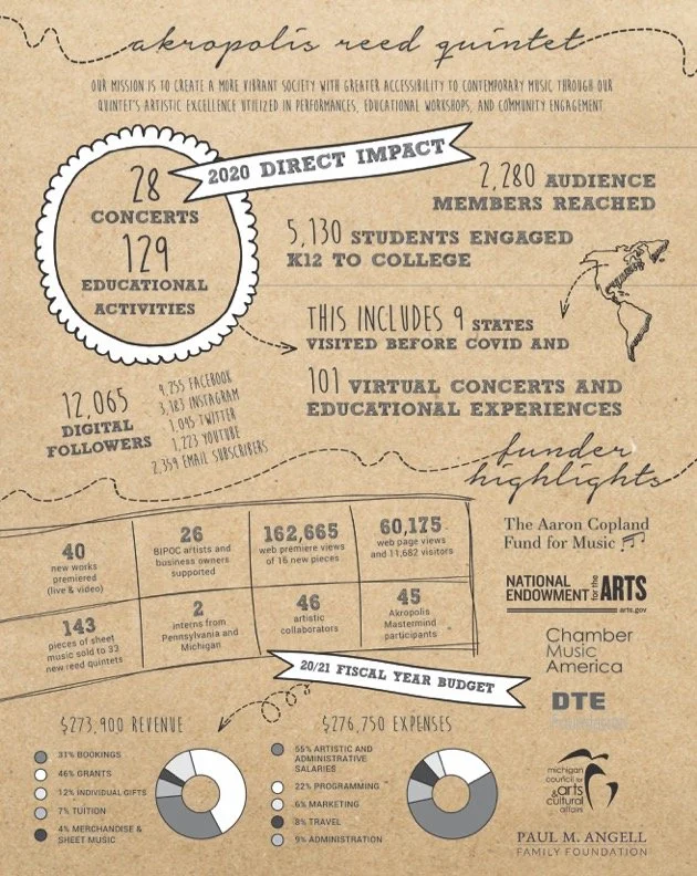 Akropolis became a nonprofit organization in 2015, but our ensemble was born in out of a deep commitment to community, education, and creating cultural connections. We are equally proud of the business we’ve built as the art we have created, and we hope you enjoy learning about the mission and organizational impact Akropolis has on both our local Southeast Michigan community and the classical music world.