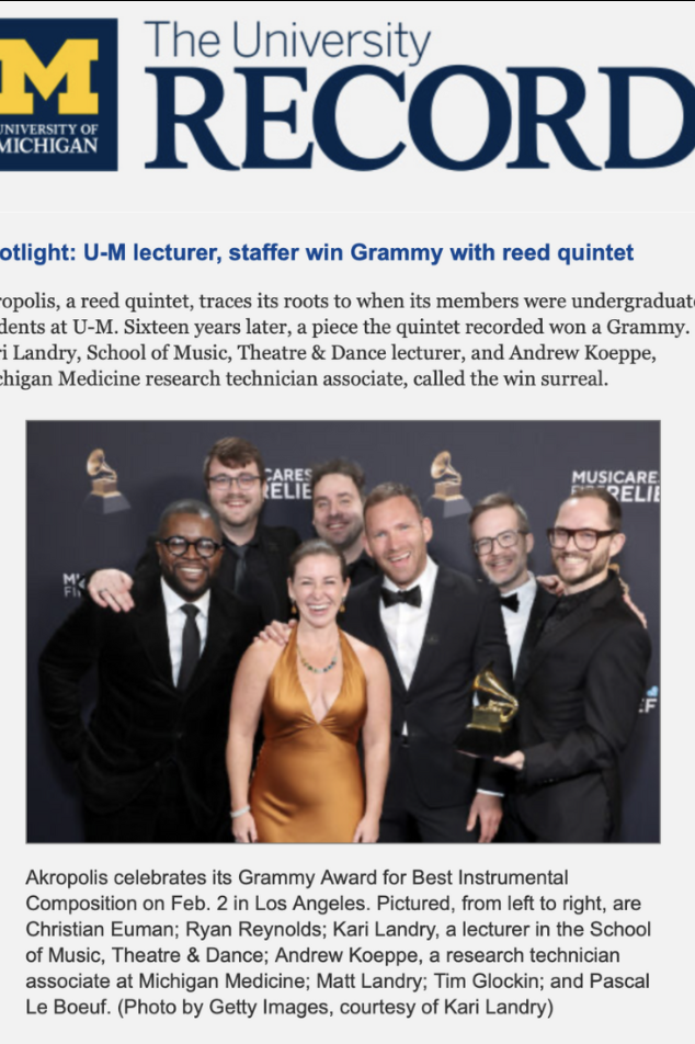 “Nearly a decade since their first performance, the Akropolis Reed Quintet continues to dazzle and engage audiences with virtuoso off-the-wall performances.”
