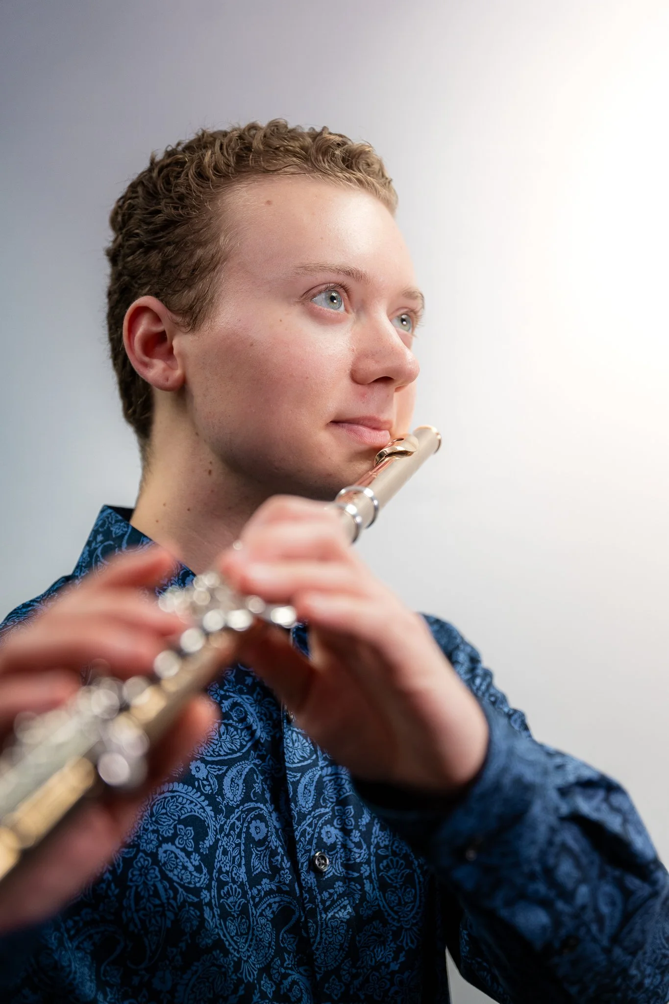 Aaron Dore (he/him) is a flutist currently based in Boston, Massachusetts. He grew up in Wicklow, Ireland, and moved to New Jersey with his family when he was nine years old. Aaron was surrounded by music growing up, with his parents playing trumpet and piano, as well as one of his aunts being a professional pianist/clarinetist in England. Aaron began studying flute in fourth grade and enjoyed various ensembles of different genres from wind ensemble to pit orchestra to jazz throughout middle/high school. He participated in a youth orchestra in Kilkenny, Ireland when he moved back there from 2018 to 2019, where he had the privilege of performing and traveling throughout Europe, including a trip to Hamburg, Germany. Aaron took private lessons with Susan Graham in New Jersey throughout middle and high school before deciding to pursue music at a higher level. He participated in the Juilliard Summer Winds’ inaugural program via Zoom in 2020, later beginning his studies with Professor Sarah Brady at the Boston Conservatory in 2021. Aaron has also attended the Cortona Sessions for New Music in Cortona, Italy, and explored the study of new music in great depth. During his time at Boston Conservatory, Aaron has played principal in wind ensemble and opera productions, and has enjoyed a variety of chamber music endeavors, including an extended period with a woodwind quintet named “Cosmic Winds.” Aaron has also been seen performing around Boston, with groups such as the New England Philharmonic and Horizon Ensemble. He has given recitals in both the U.S. and Ireland. Aaron is set to graduate from Boston Conservatory at Berklee in May of 2025 and will be attending the University of Delaware next to pursue a Masters in Chamber Music, as well as participating in the school’s graduate woodwind quintet.